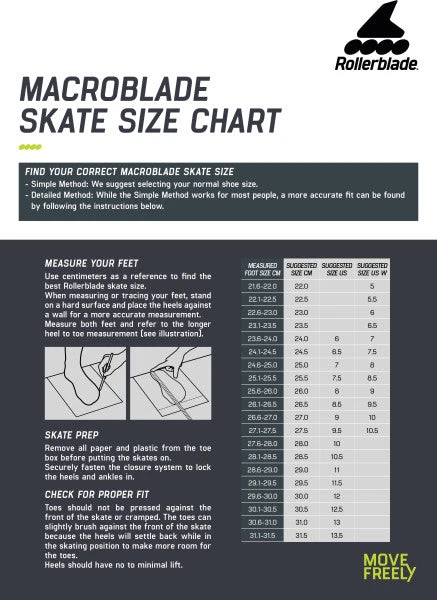A step up from the Macroblade 80 skates these provide more speed and a smoother ride across rougher surfaces. We would recommend the Macroblade 90 for intermediate to advanced level skaters, it is ideal for fast paced fitness skating and commuting.