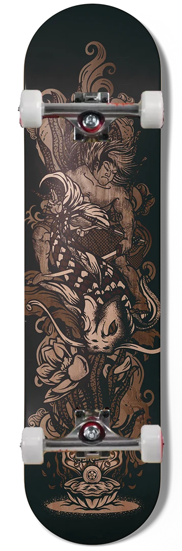 The Shibui Koi is a modern skateboard deck with a Japanese monster legend inspired design. Made from 100% Canadian hard rock maple from managed forests. Generous kick tail with medium concave nose and tail that are great for performing freestyle tricks and cruising.