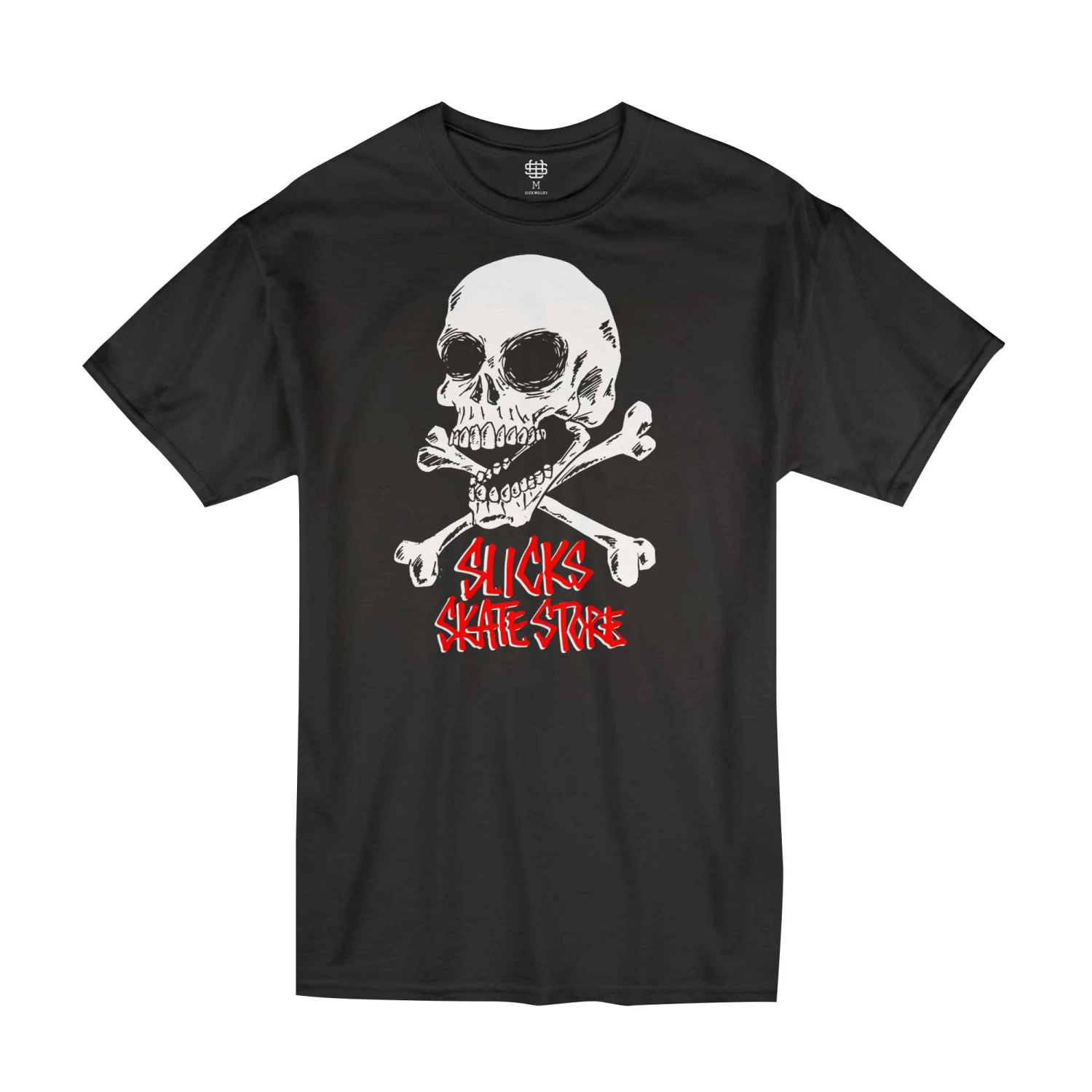 We’ve teamed up with @fosgraphics, owner of Heroin Skateboards, to bring out the Slick’s Skate Store Fos Crossbones Kids T-Shirt in Black!