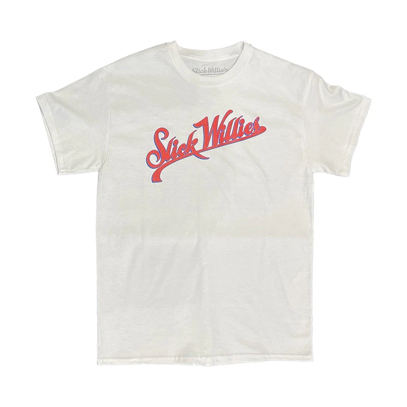 The Slick Willie’s Original Logo T-Shirt in White features a cleaned up version of our first logo dating back to the 1970’s