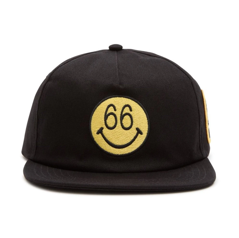 The Vans 66 Unstructured Hat features a smiley face on the front and a patch on the side.