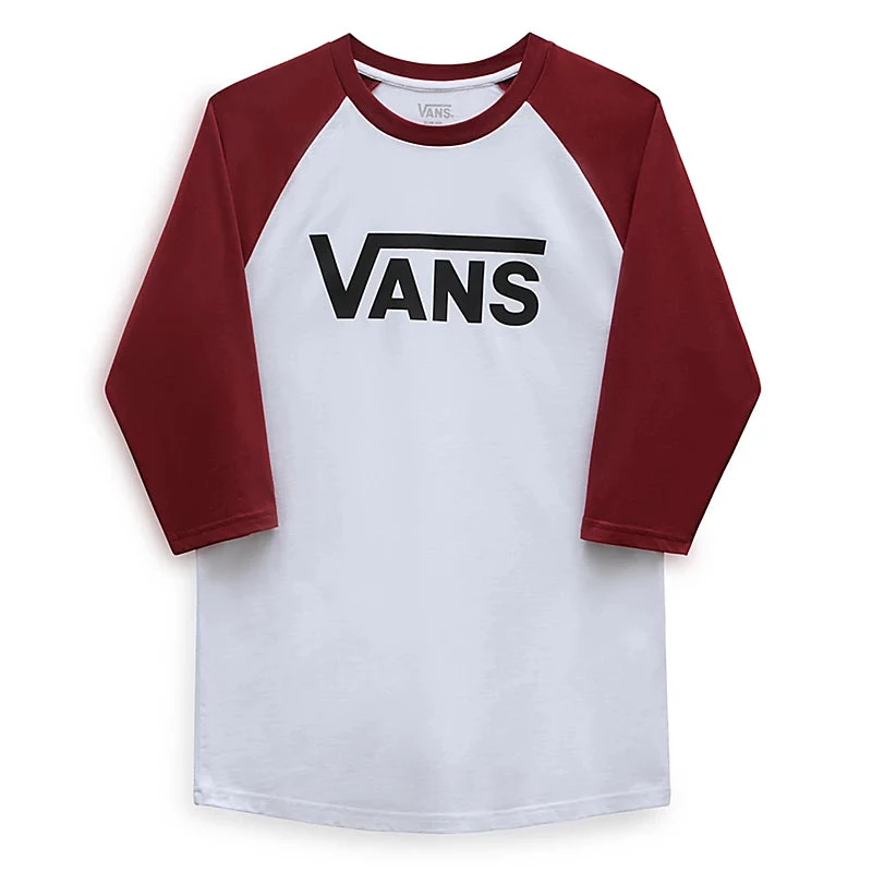 The Vans Classic Raglan Long Sleeve T-Shirt has a crew neck and 3/4 length sleeves with contrast colours. It also has the Vans logo on the front.