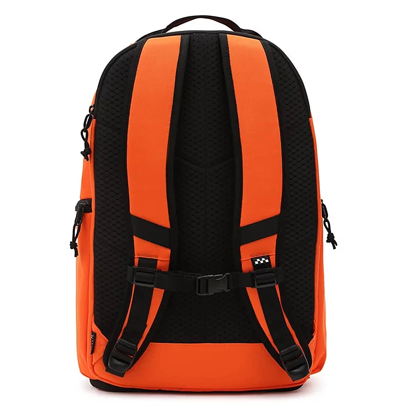 From the skatepark to wherever your day takes you next, the Vans DX Skatepack is a deluxe backpack made with CORDURA® fabrics that are recognized for their long-lasting durability and resistance to abrasion, tearing, and scuffs. But beyond the durable exterior is a wealth of elevated features that keep your stuff safe and make your life easier. From the adjustable skate straps and removable shoe compartment to the ergonomic, padded shoulder straps and adjustable sternum strap for comfort, the Vans DX Skatepack comfortably carries so much more than your board. Inside, the padded laptop compartment and internal organizer keep your important items nearly arranged, while the anti-odor technology protects against the smells of an active life. Finished with an exterior zippered pocket featuring a stretch mesh extension for your water bottle, this skatepack ups the game with classic Vans style. Does not come with water bottle or laptop. • PADDED LAPTOP COMPARTMENT – Keep your laptop safe in a padded external laptop compartment. Fits most 15-inch laptops. • ORGANIZATION – Arrange your cords, pens, and other important items neatly in an organizer for quick access. • ANTI-ODOR TECHNOLOGY – Odor control technology added to the lining of the main compartment reduces odor and protects against the smells of an active life. • WATER BOTTLE POCKET – Stay hydrated with a zippered side pocket featuring a stretch mesh extension for your water bottle. • ERGONOMIC SHOULDER STRAPS – Enjoy ergonomically-designed padded shoulder straps for greater comfort. • ADJUSTABLE STERNUM STRAP – Keep your pack in the proper position and help ease the load with an adjustable sternum strap. • WAFFLE MESH BACK PANEL – Increase comfort with a mesh back panel featuring a heritage-inspired waffle design. • ADJUSTABLE SKATE STRAP SYSTEM – Easily carry your skateboard or jacket with purposefully designed carrying straps. • REMOVABLE SHOE COMPARTMENT WITH CINCH CLOSURE – Keep your shoes separate from the rest of your gear with a removable shoe bag. • MATERIAL – Durable 100% CORDURA® polyester • DIMENSIONS – 19 x 12 x 6.5 inches • CAPACITY- 27 liters