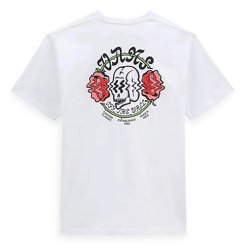 The Shaken Skull T-Shirt is made with heavier weight cotton and features wavy skull and rose graphics at the left chest and back.