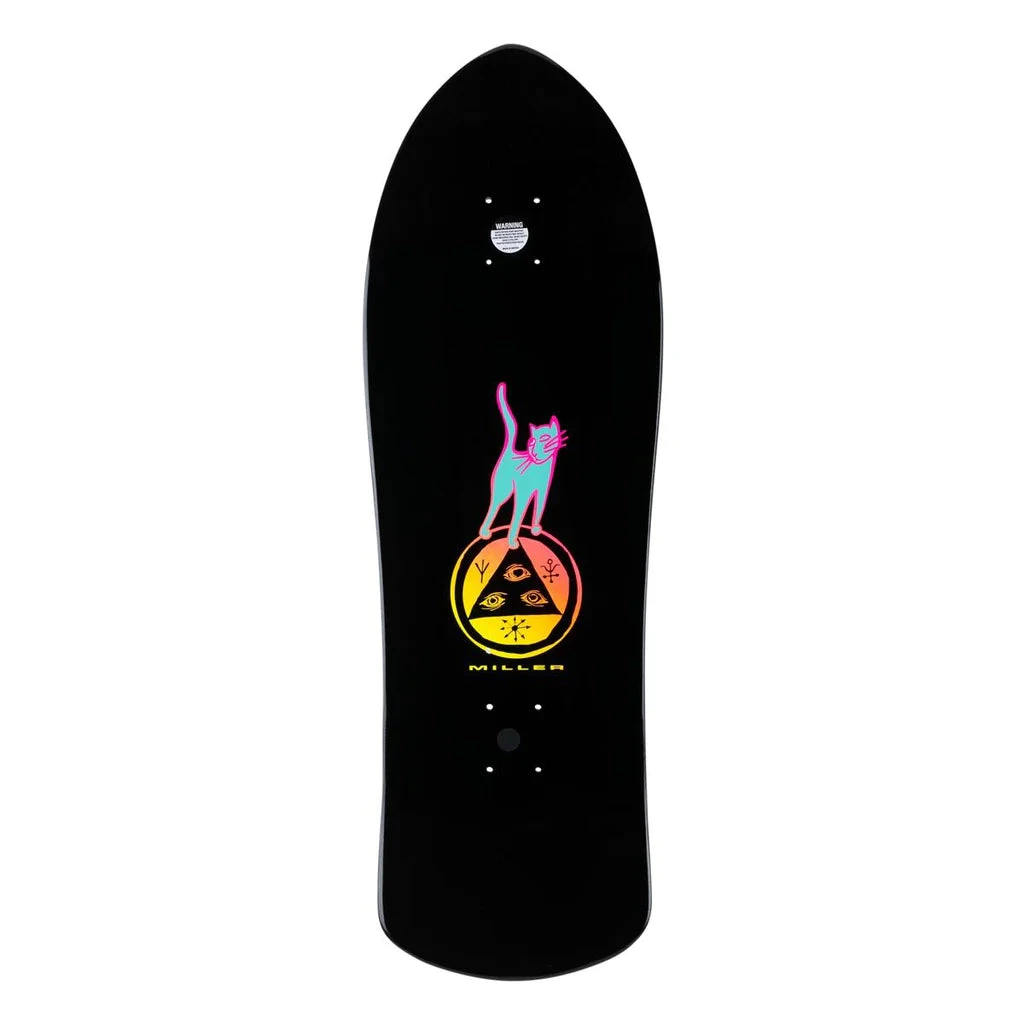Here is the Welcome Chris Miller Faces on Crossbone Black Dip Skateboard Deck in 10″ !